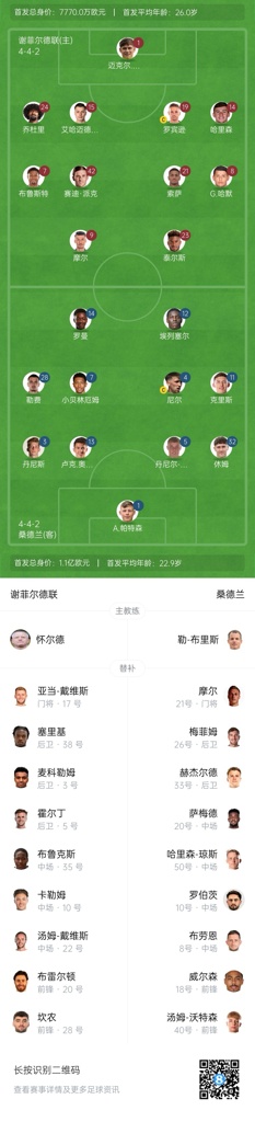 2亿镑对决&胜者进英超!英冠附加赛决赛-谢菲联vs桑德兰首发出炉