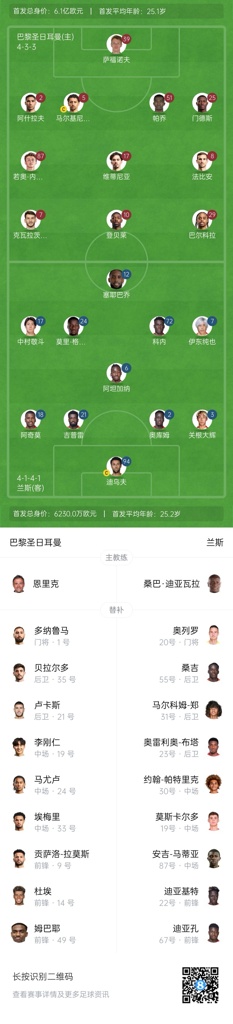 05月25日讯 法国杯决赛,巴黎vs兰斯比赛即将打响。赛前首发出炉。
